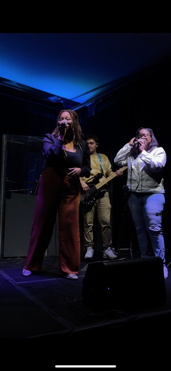Our worship team leads us in songs that share about who God is. The lyrics are on a screen too!